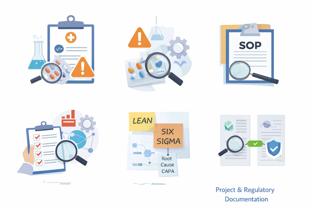 We specialize in the creation and implementation of comprehensive Standard Operating Procedures (SOPs) and robust quality processes specifically designed for regulated companies. Our services include the establishment of quality processes for pharmacovigilance (PV), which are essential for ensuring compliance and safety in the industry. Additionally, we focus on managing deviations effectively and providing specialized regulatory training to enhance your team's understanding and adherence to industry standards. Let us help you build a strong foundation for your operational excellence through tailored quality solutions.